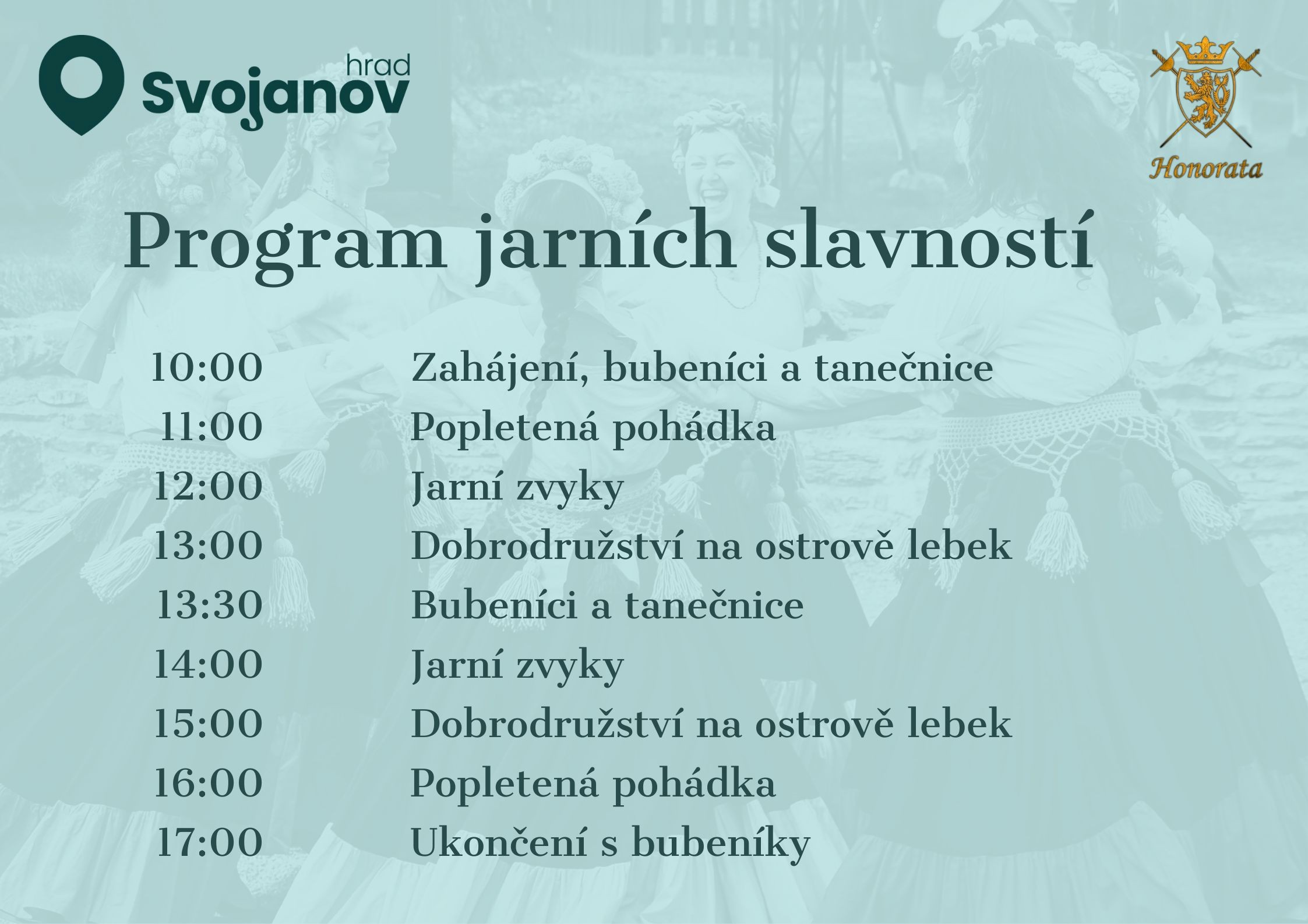 Velikonoce přicházejí a to je jedinečná příležitost navštívit naše tradiční jarní slavnosti, které se budou konat o víkendu 4. a 5. dubna 2026. Přijďte s námi přivítat jaro a užít si pohádkovou atmosféru. Letohradský šermířský spolek Honorata zahájí slavnosti průvodem v dobových kostýmech a na hradním nádvoří pak pro vás připraví po oba dny program. Těšit se můžete na vystoupení tanečnic a bubeníků, jarní zvyky a pohádková divadelní představení – Dobrodružství na ostrově lebek a Popletenou pohádku. V hradních zahradách si budete moci vyzkoušet střelbu z luku nebo si pohladit a vyfotit se s oslíkem nebo ovečkami. Součástí jarních slavností bude bohatý jarmark a tvořivé dílničky. Zároveň budou otevřeny oba prohlídkové okruhy, na kterých se v prostorách velikonočně vyzdobeného hradu dozvíte nejen historii hradu, ale i to, jak Velikonoce slavili naši předkové.